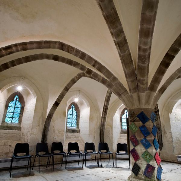 Stained Glass 13th /14th century. 14th century wall paintings, restored in 1991. Rare polygonal apse. Crypt restored in 2007, used for private prayer, small meetings, available for retreats etc.