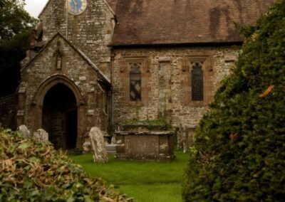The original Norman church was largely demolished during the English Civil War siege of the adjacent castle. Its successor dates from 1656, and is significant as one of only six churches known to have been allowed redevelopment during the ‘Commonwealth’ period. This was probably due to the standing of Sir Robert Harley, who had been high in Government before the execution of Charles I (which, though a Parliamentarian, he did not support). It may also be relevant that before the Civil War Brampton Bryan had become, with Sir Robert’s active encouragement, quite a centre of Puritanism.