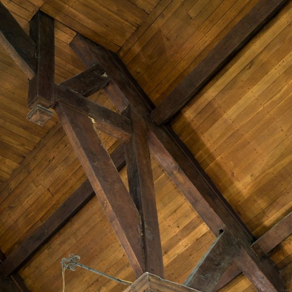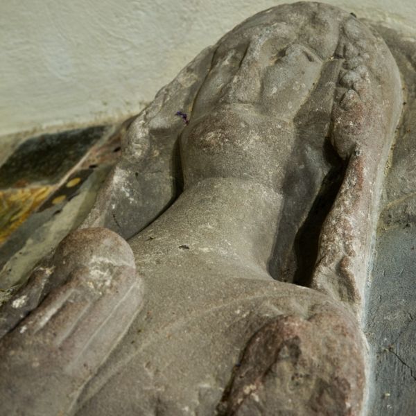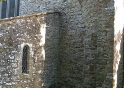 The breadth of the new building is out of all usual proportion to its length, producing a nave & chancel in one, the totality surmounted by an exceptional Triple hammer beam roof, possibly salvaged from the ruined castle. Victorian alterations – including a fine east window – have not destroyed the sense of simple sacred space.