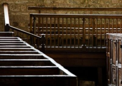 There are marvellous furnishings including Georgian box pews, a gallery and a 17th century canopied pew for the Salweys, Lords of the Manor, and still used by them at the two or three services held each year. On a clear day there are breathtaking views from the porch to the Black Mountains, Malvern and Shropshire Hills.