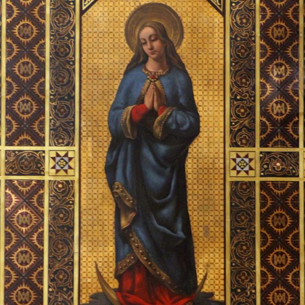 Along the side walls of the church are 14 Stations of the Cross, modelled on designs which were first exhibited by a Belgian artist at the Great Exhibition of London in 1851.