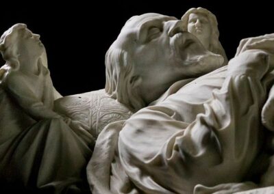The interior of the church includes fine monuments by Stuart and Scheemakers, glass by Kempe, described by Pevsner as “very fine” and “excellent” respectively. There is a rare Pugin-framed picture of the crucifixion and an organ by Nicholson (1867).