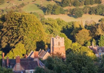 Eastnor lies at southern end of the Malvern Hills AONB. The Grade 1 listed church of St. John the Baptist is adjacent to Eastnor Castle and views of its tower are the first sight of the village afforded to those using the popular public footpath to walk from Ledbury, as well as those walking in the Castle Deer Park.