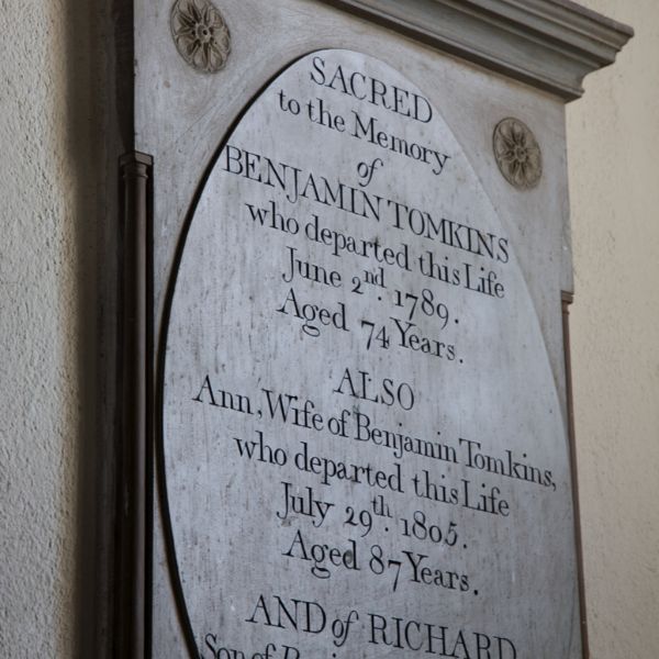 Of the many wall memorials two are of particular interest. Sir Herbert Perrott, an important benefactor to Wellington, is commemorated by a large heraldic monument on the east chancel wall. The memorial is to Benjamin Tomkins ‘the elder’ is situated on the wall above the pulpit. He moved to Wellington court from Canon Pyon in 1758. Together with his son, Benjamin Tomkins ‘the younger’ he was an important early developer of the Hereford cattle breed.