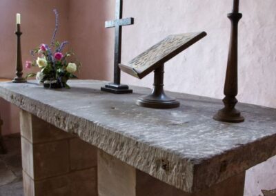 Millennium stained glass in east window and glass memorial to the 20th century poetess, Frances Horowitz.
