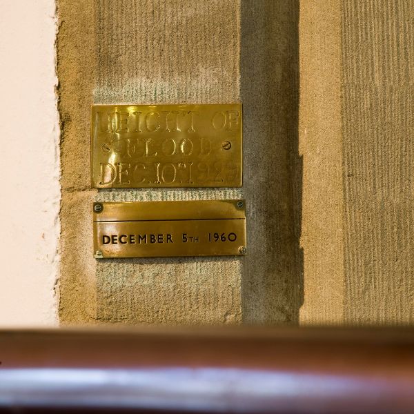 The Church is frequently subject to flooding and brass plates near the chancel arch record the height of the more memorable floods.