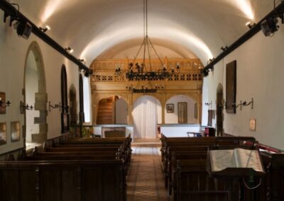 There is a new balcony at the back of the church so that precious items can be out of reach of the water. This has been decorated with a beautiful oak screen.